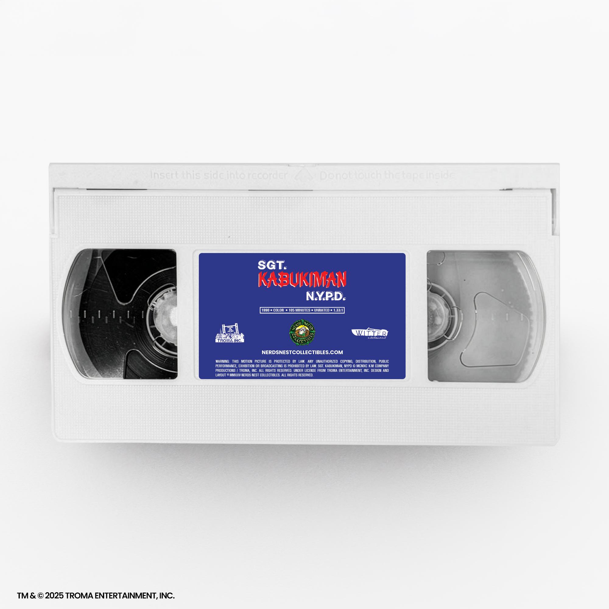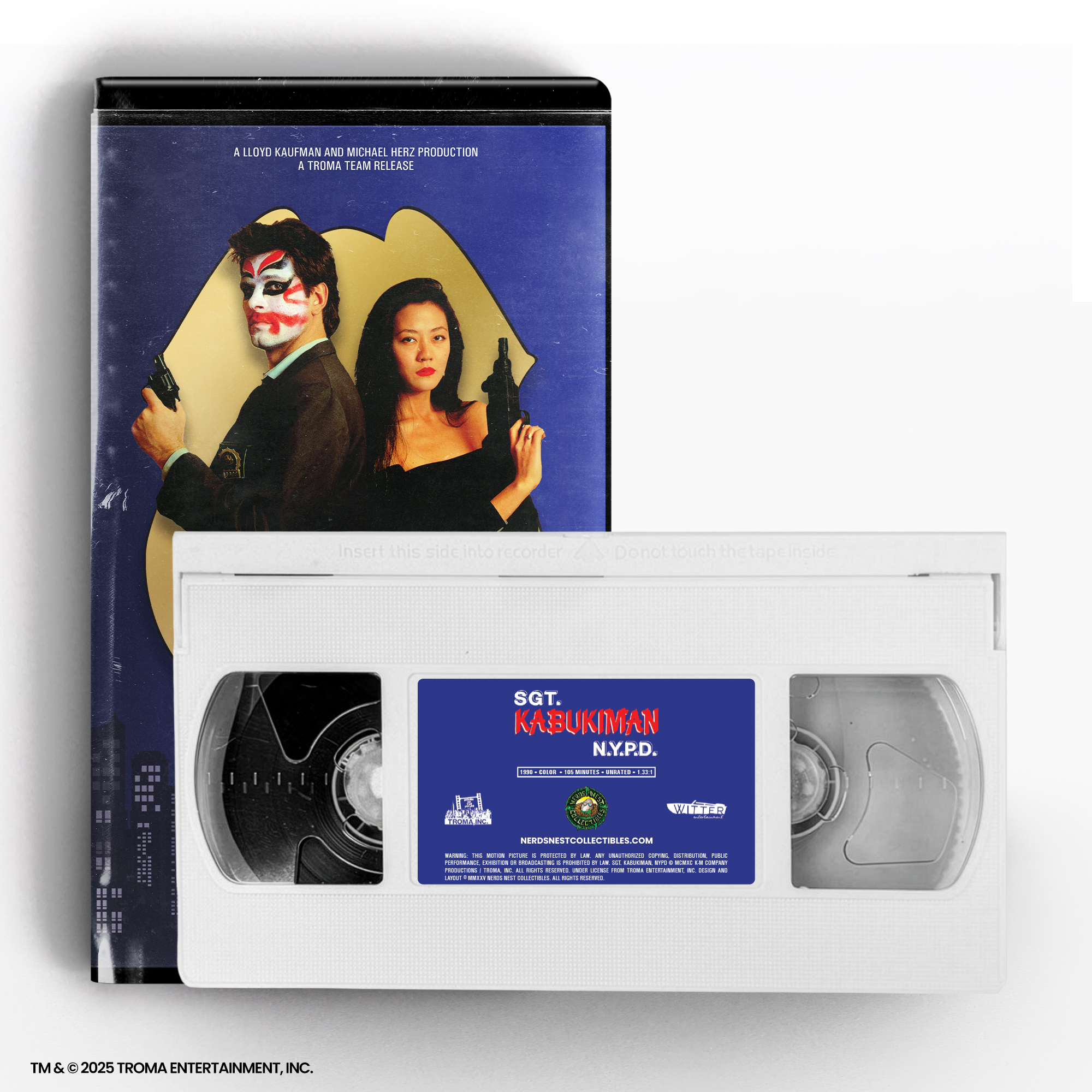 Available on VHS for the first time in nearly 30 years, the Nerds Nest Collectibles release of Sgt. Kabukiman, NYPD has been remastered from its original camera negative and features a white VHS shell housed in a classic “big box” case that evokes the spirit of the 80’s, complete with an all new graphic design.