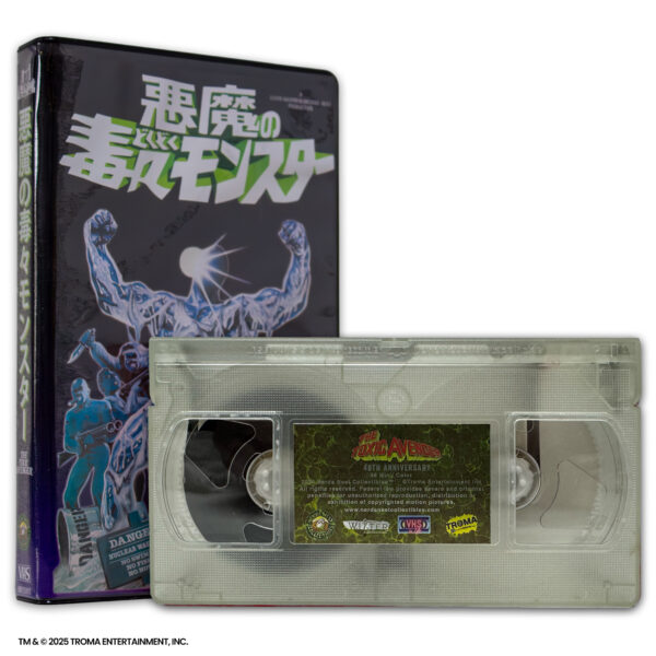 Our final release of The Toxic Avenger features a transparent VHS shell housed in a classic “big box” case that evokes the spirit of the 80’s, complete with an all new design featuring the original theatrical poster artwork by Sid Blaize and Japanese-style layout inspired by the original Japanese program with a nighttime colorway exclusive to this release.